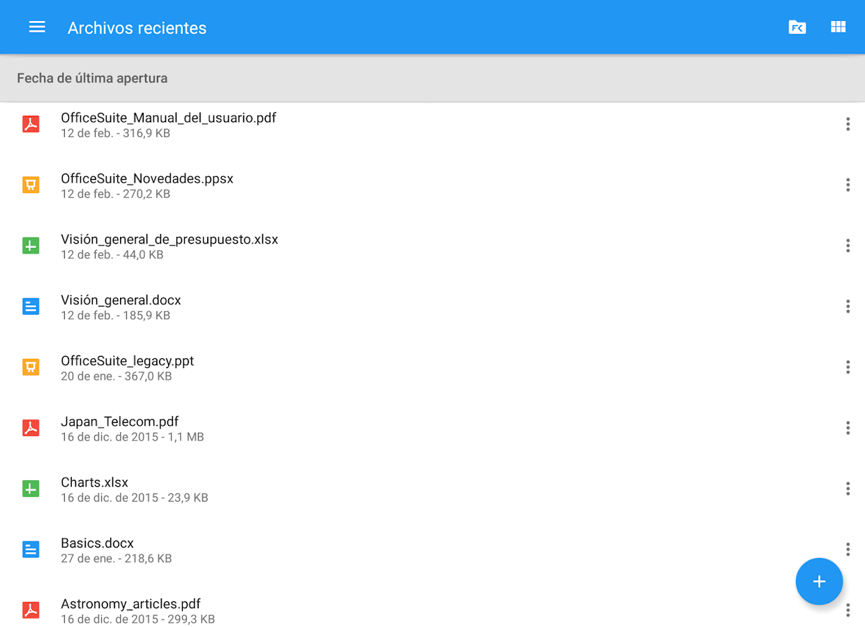 - Total compatibilidad con los formatos de Microsoft, incluyendo DOC, DOCX, DOCM, XLS, XLSX, XLSM, PPT, PPTX, PPS, PPSX, PPTM, PPSM.